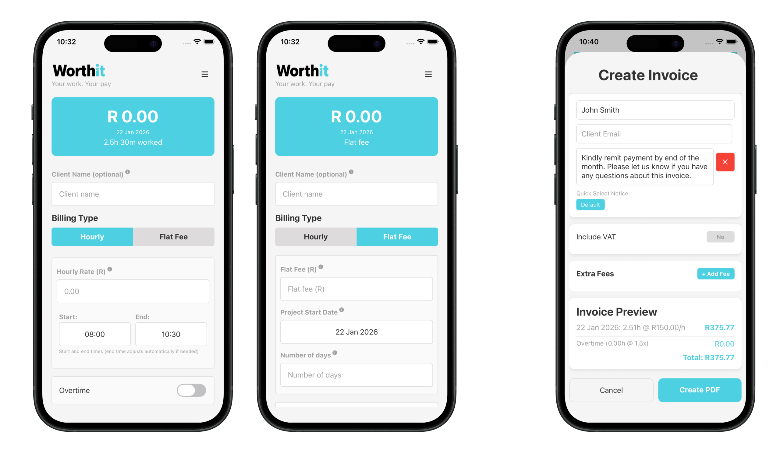 WorthIt is built for freelancers, contractors, and independent workers who value transparency. It focuses on showing exactly what a client is paying for, whether that’s a daily rate, a flat fee, or a set number of working days.